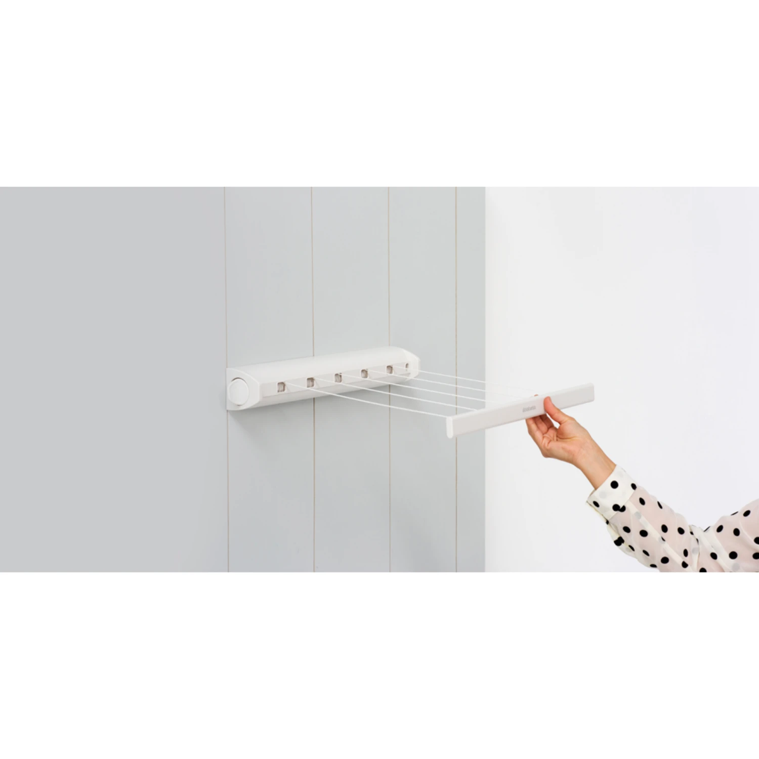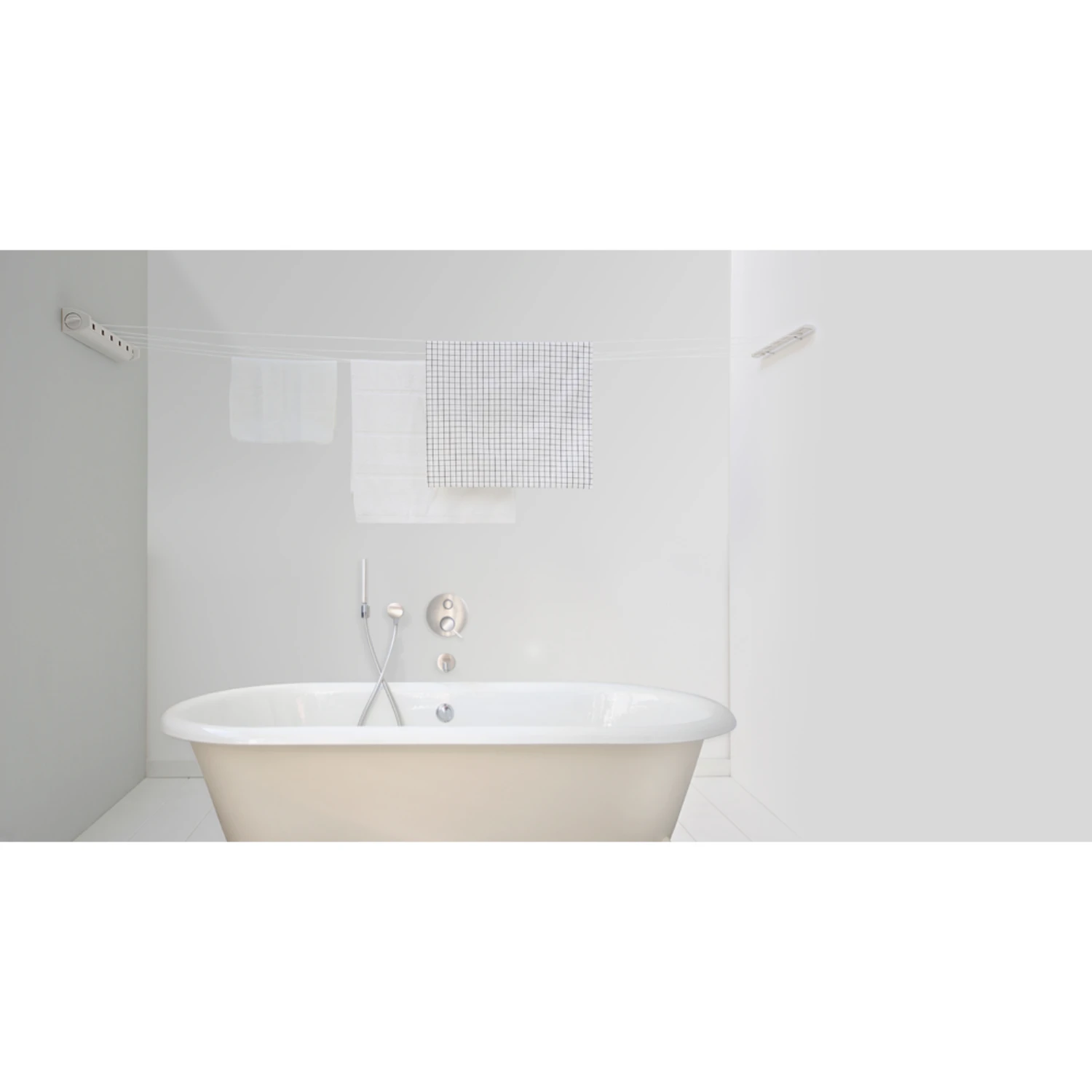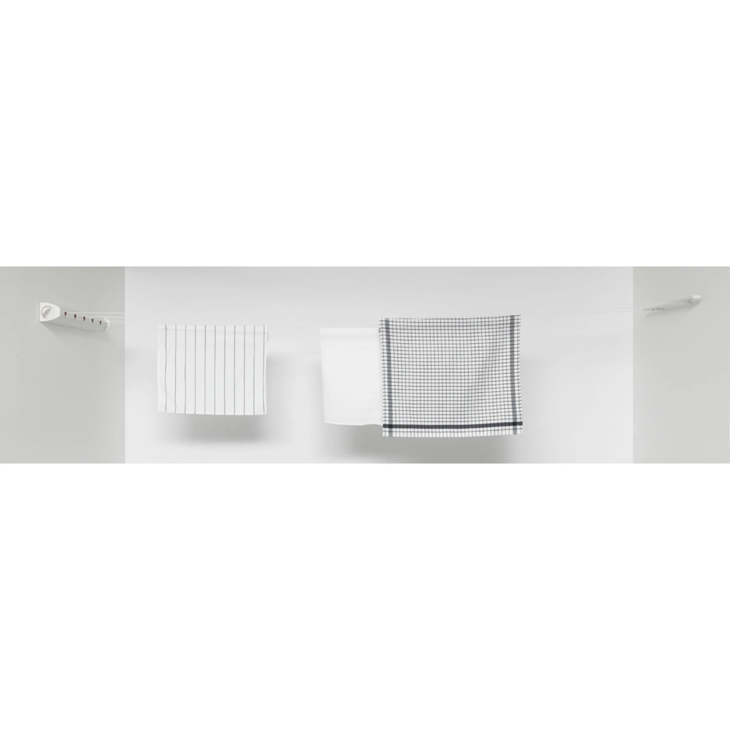 Op zoek naar extra droogruimte? Dan is de Brabantia roldrooglijn perfect. De roldrooglijn past tussen twee muren tot 4,4 meter van elkaar. Hij is soepel en eenvoudig te bedienen en biedt tot 22 meter droogcapaciteit. Het automatisch blokkerende systeem houdt deze waslijn bovendien altijd strak. De roldrooglijn is badkamer-proof, hij is gemaakt van corrosiebestendige materialen (alleen voor gebruik binnenshuis).