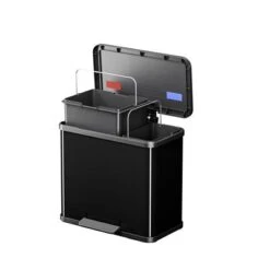 De Hailo Öko trio plus pedaalemmer heeft drie compartimenten van elk 9 liter inhoud zodat je gemakkelijk je afval kunt scheiden. De uitneembare binnenemmers hebben elk een andere kleur; geel, groen en bruin. Ze hebben handige handvatten zodat je de bakken bij een tussentijdse schoonmaak gemakkelijk kunt reinigen.