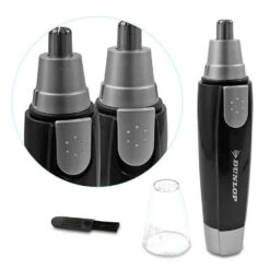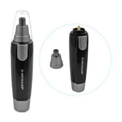 Verwijder nauwkeurig maar zacht het ongewenste neus- en oorhaar met deze trimmer van Dunlop. Het apparaat is gemaakt van hoogwaardige kunststof en RVS. Het is een compacte trimmer van 13 x 3 cm waardoor hij ook makkelijk mee te nemen is op vakantie. Na gebruik kan de afneembare kop gereinigd worden met de meegeleverde borstel. Daarnaast kan het opzetstuk met ingebouwde rotatiesnijder eenvoudig met water worden afgewassen. De trimmer werkt op een AA-batterij, deze is niet inbegrepen.